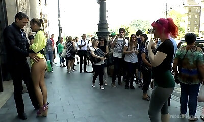 Slutty brunette in high heels drilled rock-hard in public