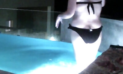Salacious pornstar caught on cameras at a pool of water preparing for act