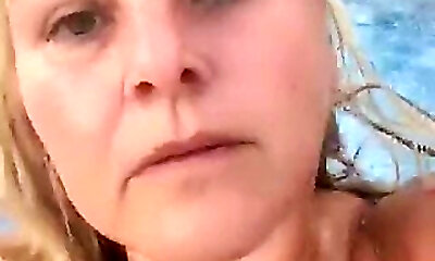 Kitty Queen - Just Nude Swimming - Light-haired Plumper MILF swimming in the pool