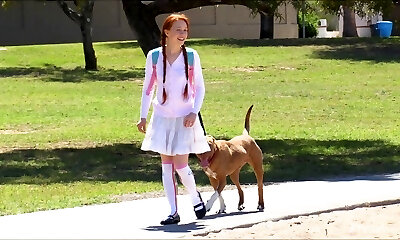 Redhead cutie goes outdoors only to have fun around with her personal parts