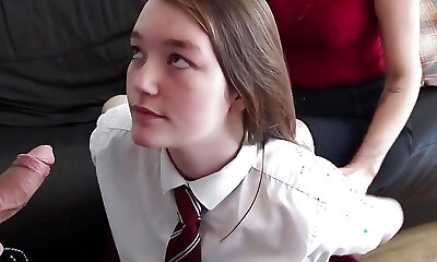 Stepmum teaches college girl Olivia Keane to suck trouser snake
