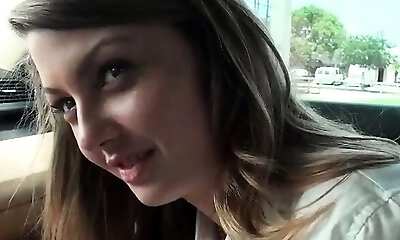 Nasty school babe gifting her bf with BJ in car