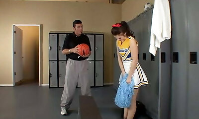 Slutty black-haired cheerleader fucks the school coach