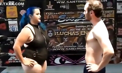 guy dominated by strong girl in mixed wrestling
